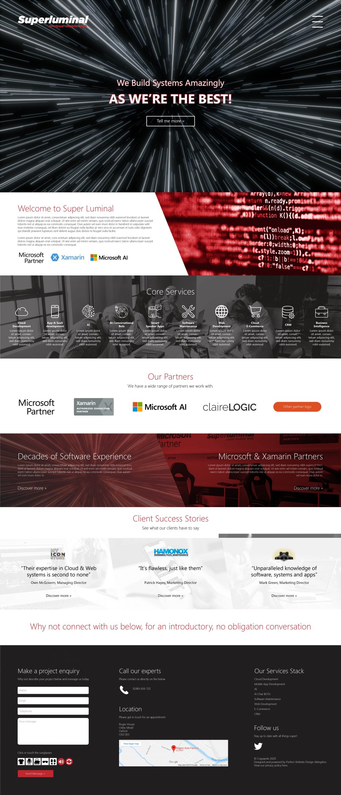I set out to understand their brand, their colours and what they were looking to get out of the website. From this, I created a variety of different designs. After a few round of changes, I created a design which Kieran from Superluminal Software was proud to run with.
